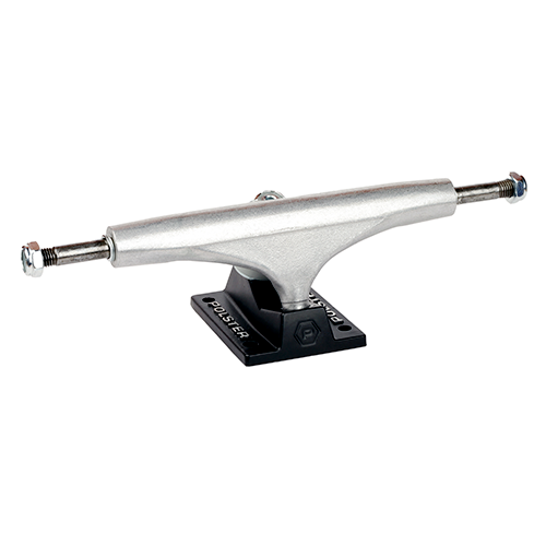 The POLSTER truck is a medium height skateboard truck with a classic yet significant look, available in 5.25" and in a variety of different colorways and finishes. POLSTER trucks are made from T6 heat treated 356 aluminum which combines maximum strength and minimum weight. The 4041 chrome moly alloy steel axle on our trucks features beveled tips to prevent the thread-ends from being damaged by impact or friction. The bushings are 95a (medium) and manufactured exclusively for POLSTER from high rebound urethane which makes the truck quick to respond while still allowing for a smooth and stable ride. POLSTER Trucks feature a New School Grad 8 steel kingpin. Its ribbed shaft prevents slipping of the kingpin even after months of wear and tear. By getting rid of as much surplus material as possible without compromising stability, the POLSTER baseplate is engineered to be lightweight yet robust.
