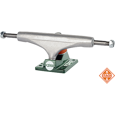 Les gommes sont de dureté 95a (moyen) et sont fabriqués exclusivement pour POLSTER donnant à l'uréthane une réponse élevée qui rend le truck prompt à réagir, tout en permettant des flexions douces et stables. Les trucks POLSTER disposent d'un nouveau kingpin Grad acier 8. Sa tige côtelée empêche le glissement du pivot, même après des mois d'usure. En se débarrassant de l'excédent de matière autant que possible sans compromettre la stabilité, la semelle POLSTER est conçu pour être légere mais robuste.
