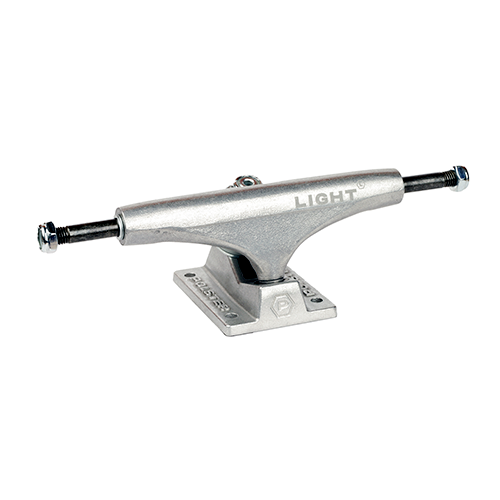 The POLSTER truck is a medium height skateboard truck with a classic yet significant look, available in 5.25" & 5,85" and in a variety of different colorways and finishes. POLSTER trucks are made from T6 heat treated 356 aluminum which combines maximum strength and minimum weight. The 4041 chrome moly alloy steel axle on our trucks features beveled tips to prevent the thread-ends from being damaged by impact or friction. The bushings are 95a (medium) and manufactured exclusively for POLSTER from high rebound urethane which makes the truck quick to respond while still allowing for a smooth and stable ride. POLSTER Trucks feature a New School Grad 8 steel hollow kingpin. Its ribbed shaft prevents slipping of the kingpin even after months of wear and tear. By getting rid of as much surplus material as possible without compromising stability, the POLSTER baseplate is engineered to be lightweight yet robust.